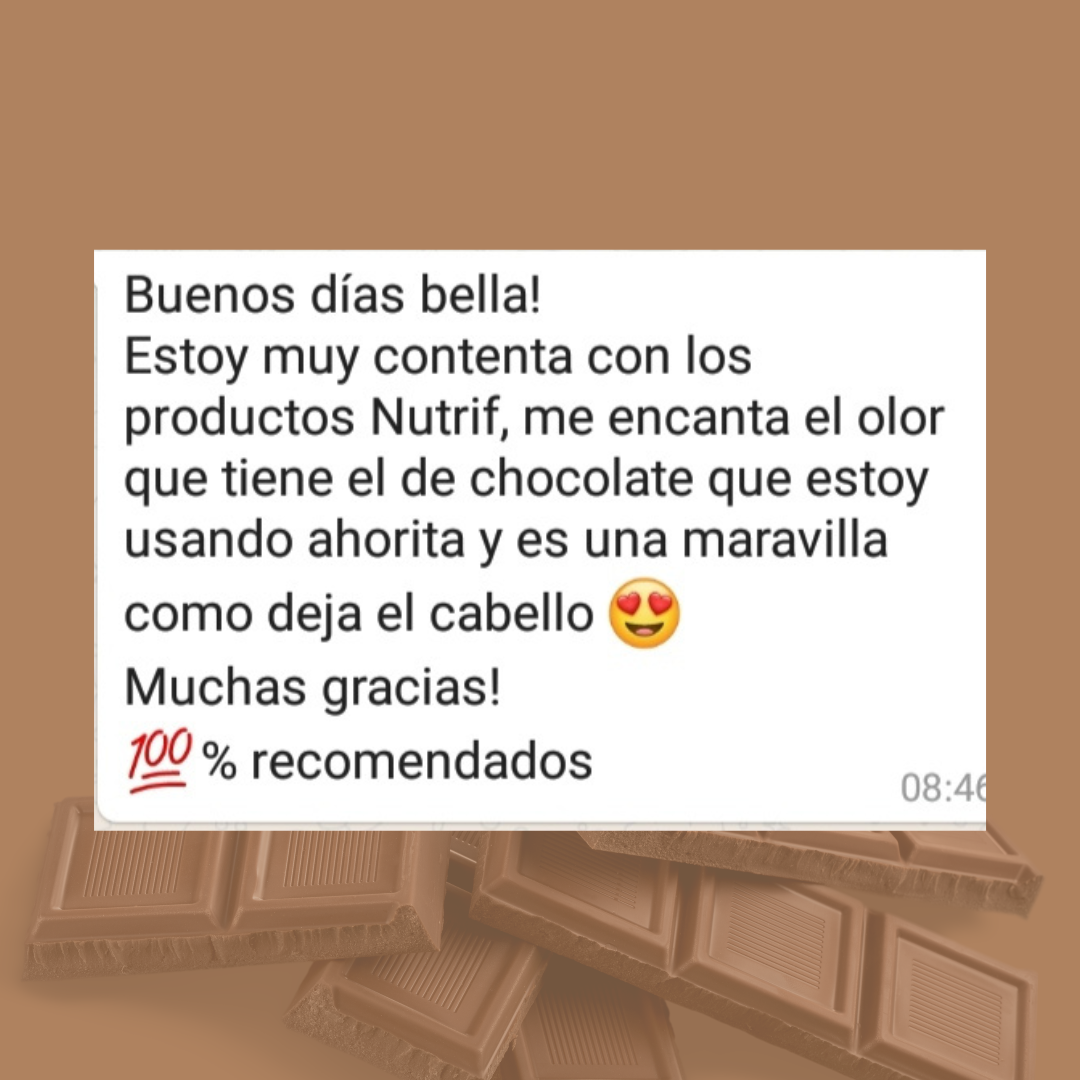 1️⃣ Prepara: Lavá tu cabello con shampoo y retirá el exceso de humedad con una toalla. 2️⃣ Aplica: Esparcí la Mascarilla Nutrif Chocolate generosamente de medios a puntas, distribuyéndola uniformemente por toda la melena. 3️⃣ Elegí tu nivel de reparación: