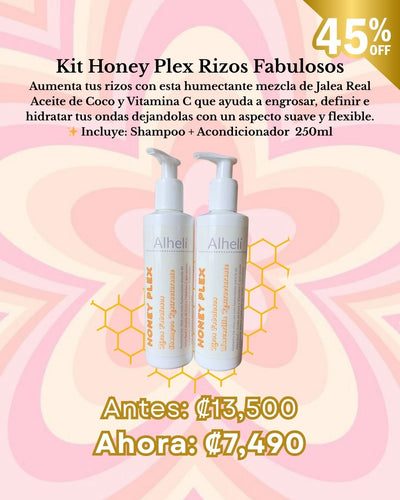 🍯 Honey Plex Rizos Fabulosos 🍯 Transforma tus rizos con Honey Plex: una mezcla humectante de Jalea Real, Aceite de Coco y Vitamina C. Define, hidrata y da grosor a tus ondas para un aspecto suave y flexible.